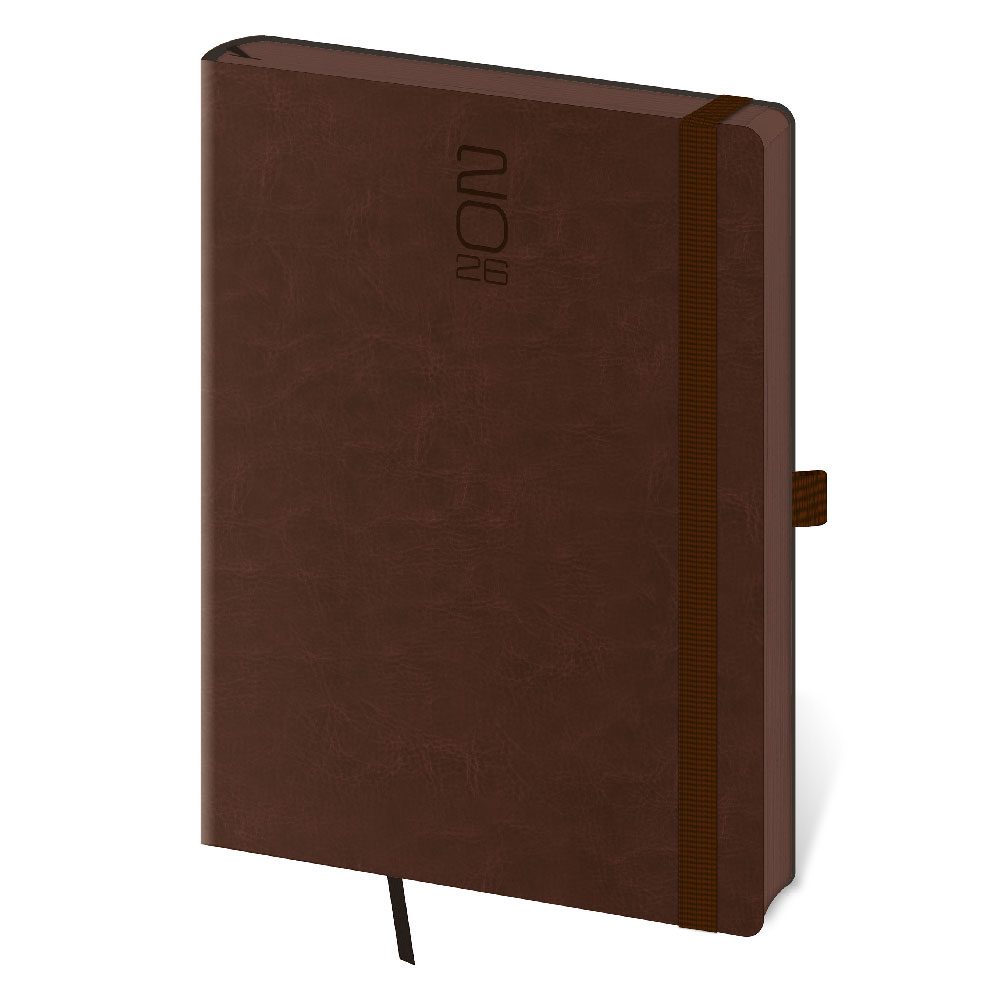 Weekly diary A5 2026 Memory with elastic band - dark brown