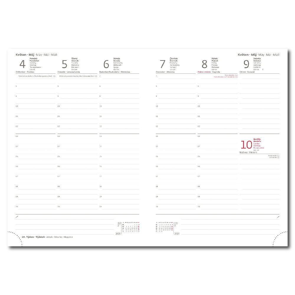 mezinárodní svátky, roční výhled, týdenní layout, adresář,