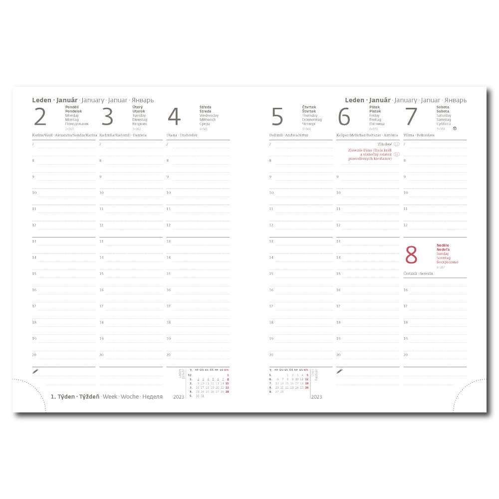 mezinárodní svátky, roční výhled, týdenní layout, adresář,
