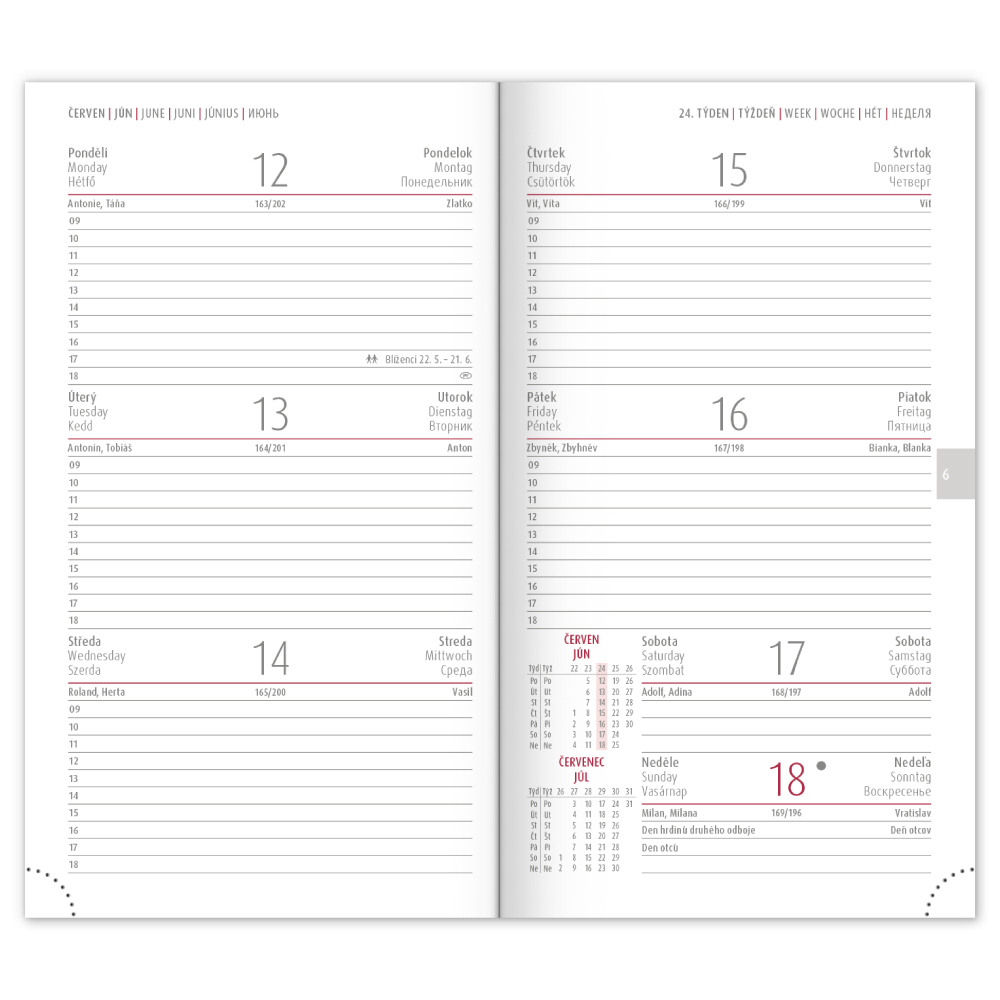 Kalendárium: 6jazyčné týdenní od prosince 2022 (CZ, SK, GB, DE, HU, RU)