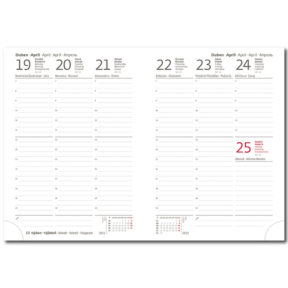 mezinárodní svátky, roční výhled, týdenní layout, adresář,