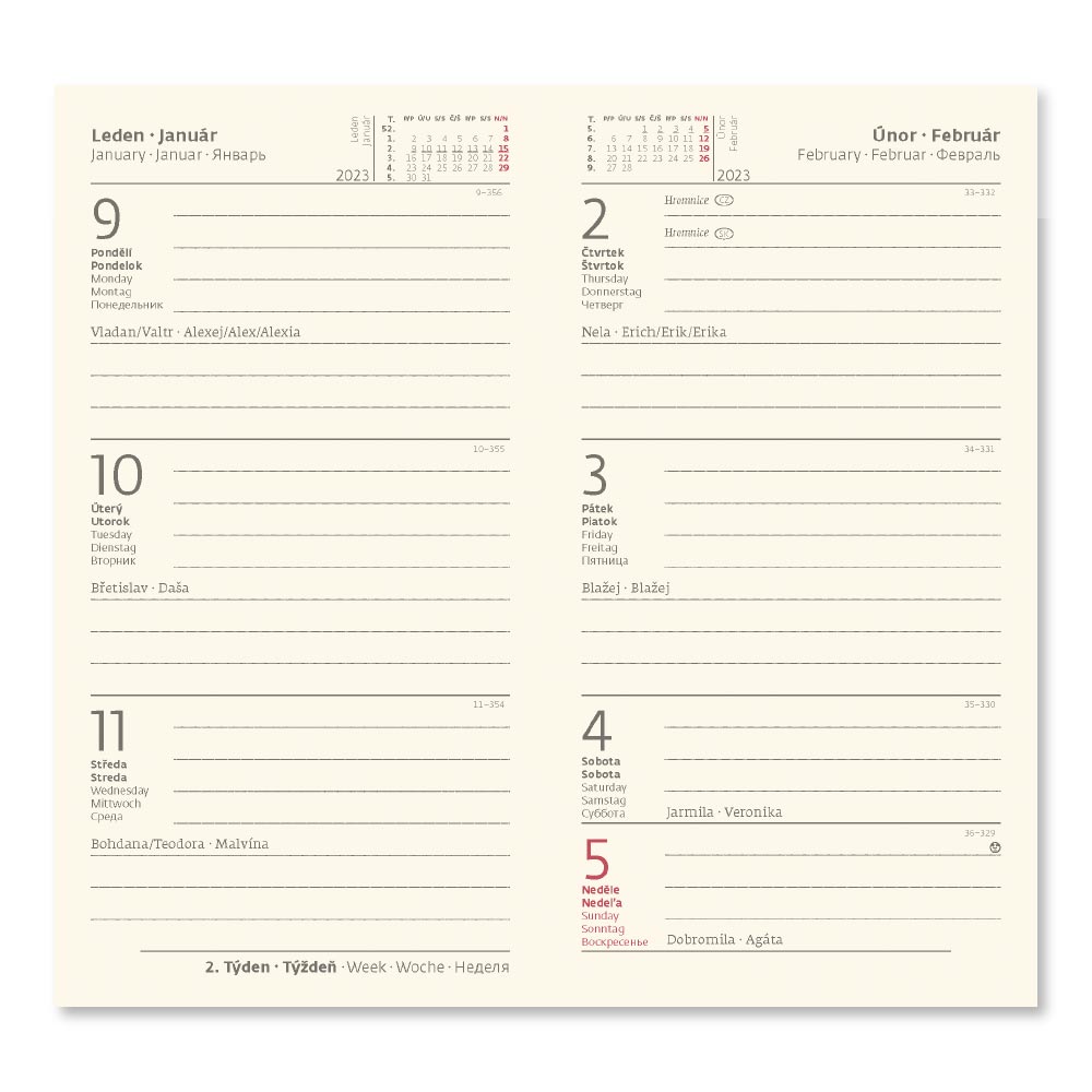 mezinárodní svátky, roční výhled, týdenní layout, adresář,