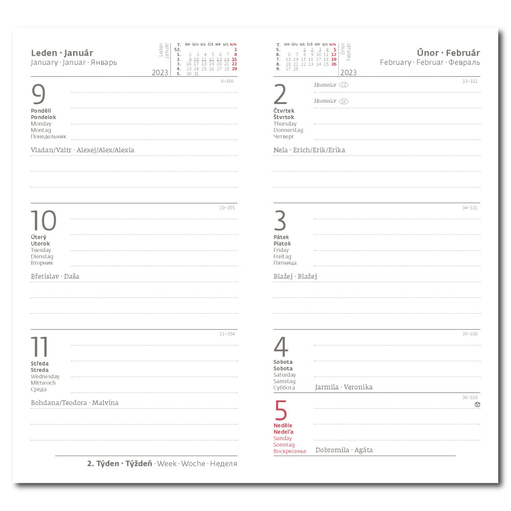 mezinárodní svátky, roční výhled, týdenní layout, adresář,