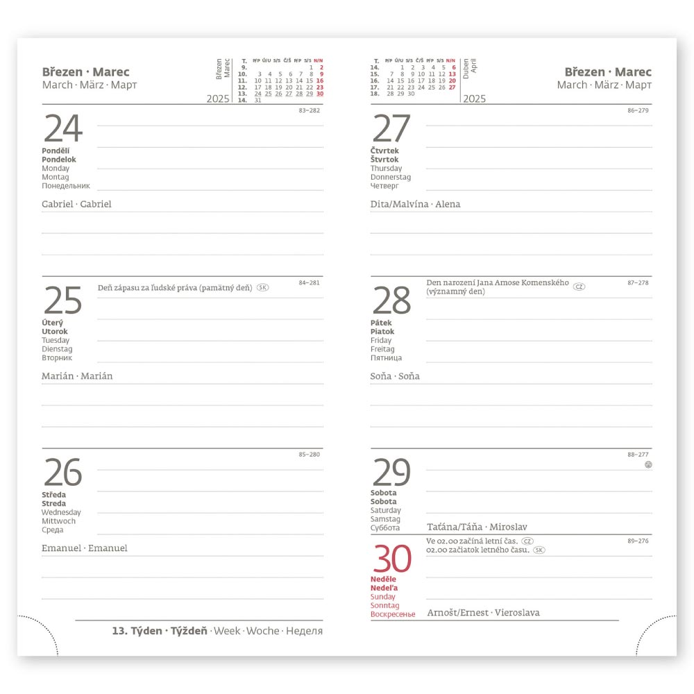 mezinárodní svátky, roční výhled, týdenní layout, adresář,