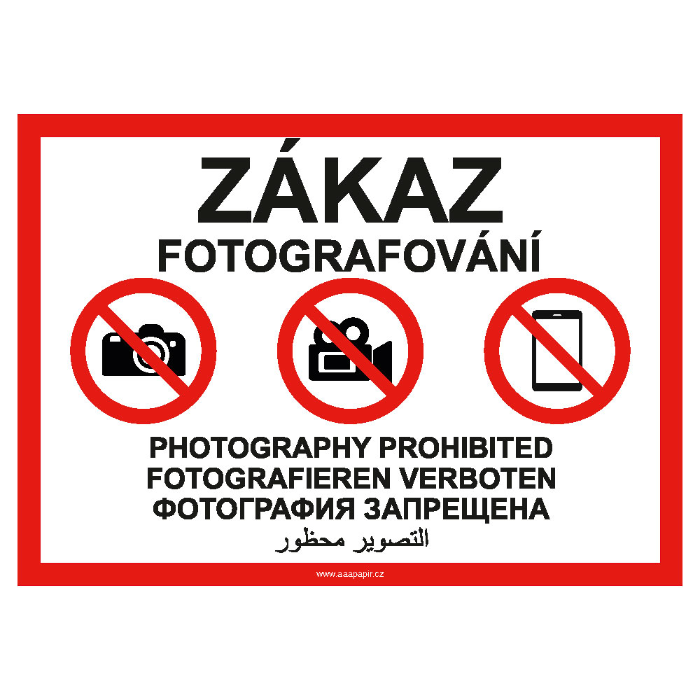 Zakaz fotografowania - Znak BHP, naklejka A5