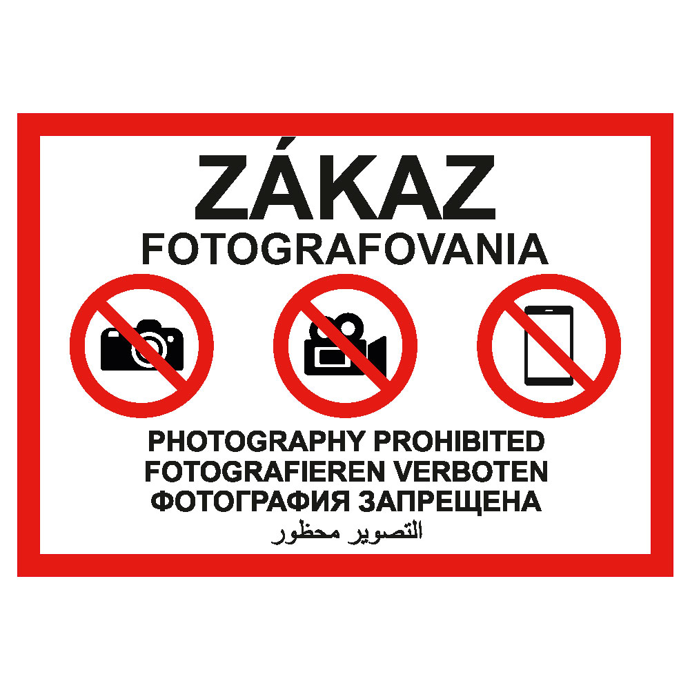 Zakaz fotografowania - znak BHP z dziurkami, płyta PVC A4, 2 mm